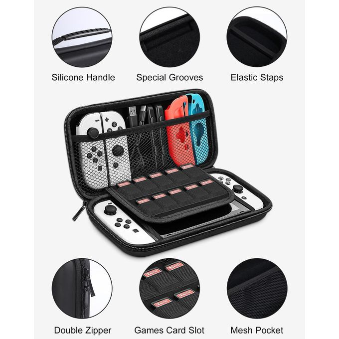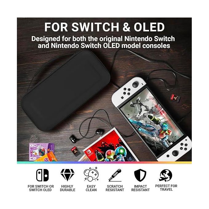 - High Quality Case – High Quality Durable hard shell Protect your Nintendo Switch / OLED Model Console free from scratches. Two straps secures the Nintendo Switch inside the case, making your switch more stable and convenient when you’re traveling or not using.